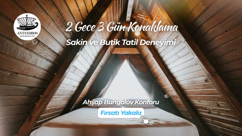 Cüzdanınızı evde bırakacağınız, sadece keyfinize bakacağınız bir tatile ne dersiniz? Yanlış duymadınız! Antandros Bungalov Club'da, 2 gece 3 gün boyunca konaklamanız bizden hediye. 5 yıldızlı konforu deneyimlemek için tek yapmanız gereken bir form doldurmak